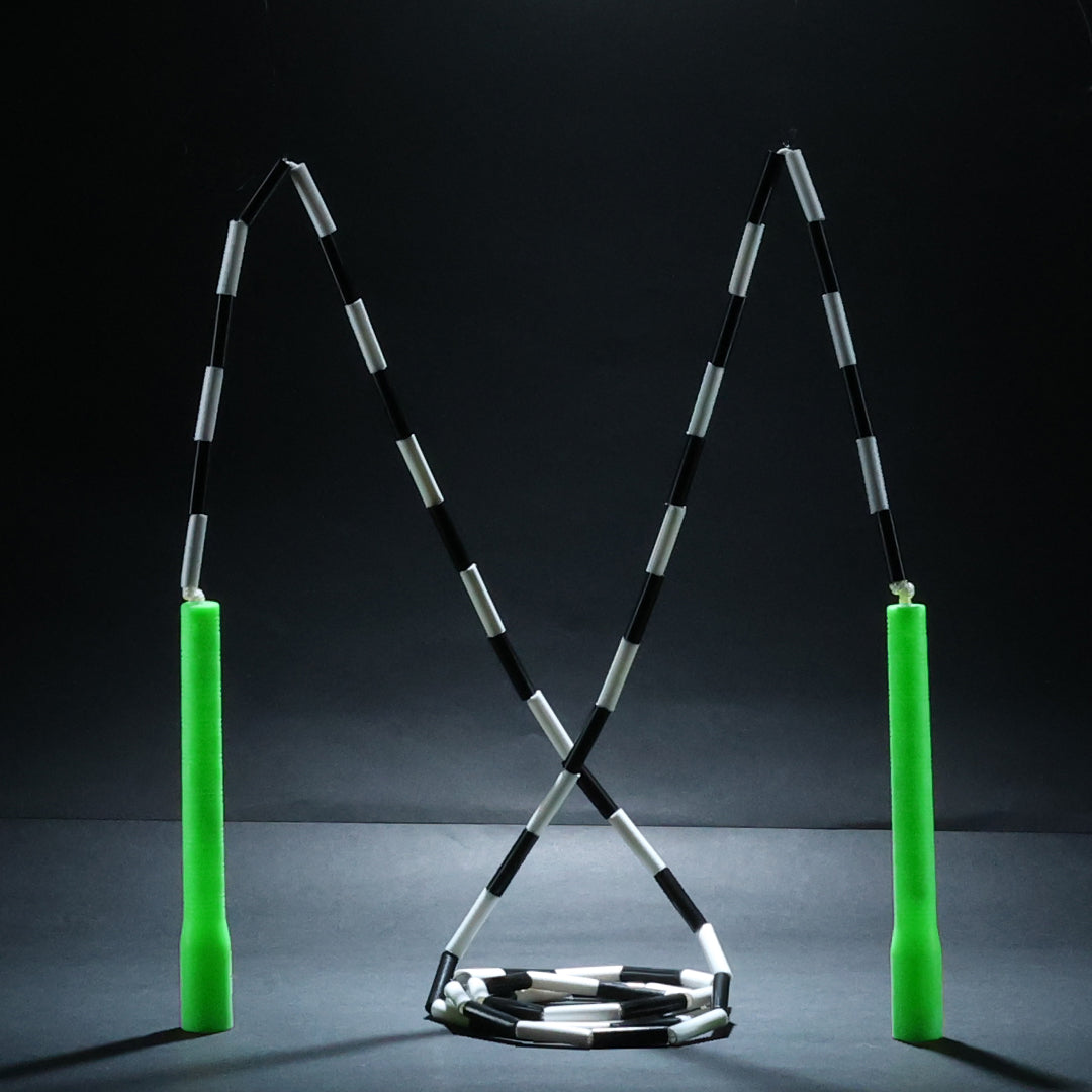 The rope that experts recommend for learning correct jump rope form and technique, setting you up the right way for learning tricks and freestyle jumping. 8'' long Parachute Rope With PVC Unbreakable handles. softer heavy 1.50'' beads add more resistance for robust and heavy workouts. Popular among jump rope enthusiasts, advance athletes and boxers. An excellent all-round fitness rope. Benefits: - Easy grip, smooth in turning and precise control - Perfect to do tricks and criss-crossing - Gives extra resistance for heavy workouts - Expert's choice for learning tricks and releases Specs: - 8'' long Parachute unbreakable rope - 100% strong beads - 1.5'' long Beads - Adjustable to desired length *NOTE: Jump Ropes are not intended for use on hard / abrasive / concrete floor. To maximize the life of your jump rope, train on Wood flooring or Rubber/PVC jump rope mat.